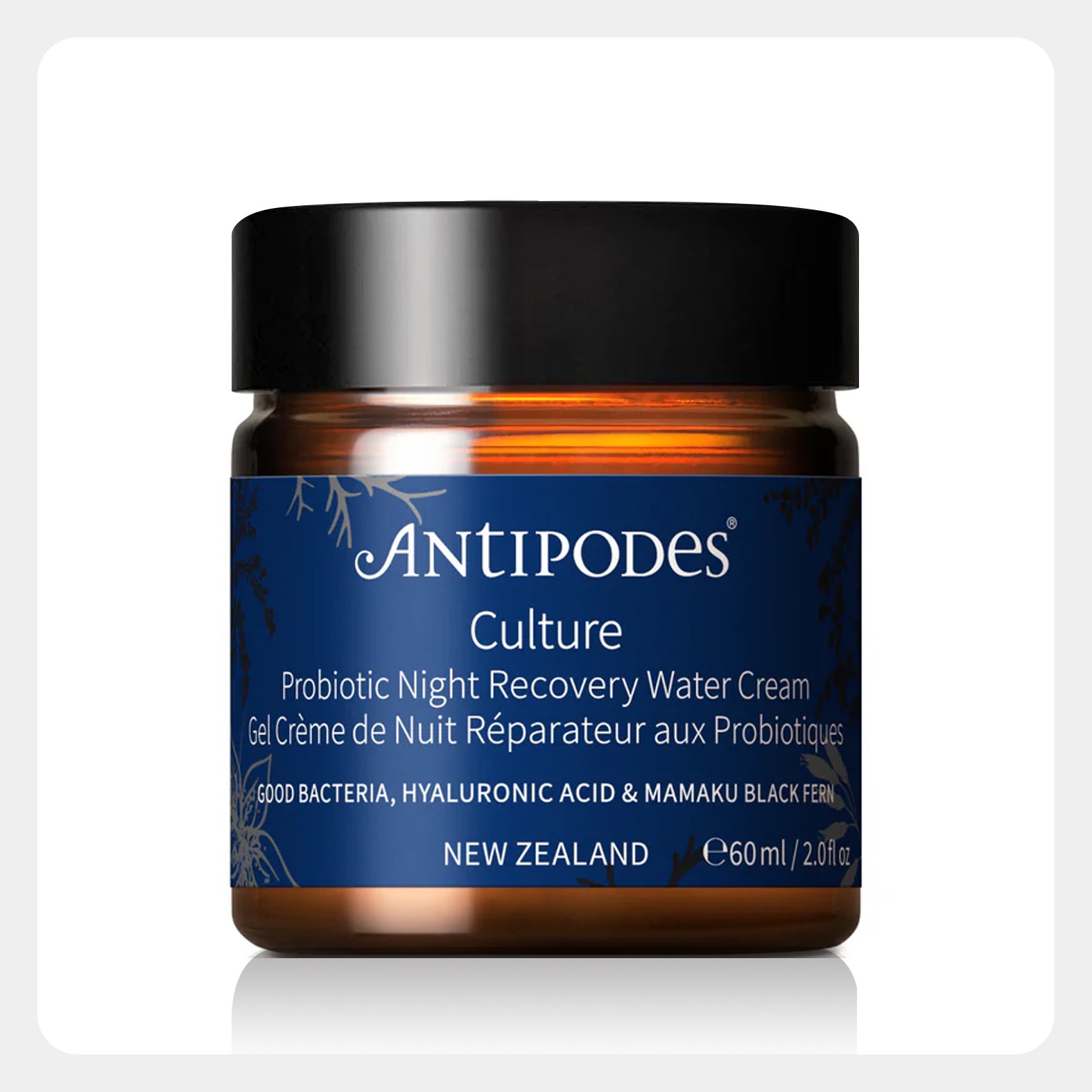 Balance your skin’s microbiome and restore calm to blemished, red, or stressed skin with this cloud-soft water cream. Kalibiome AGE probiotic features healthy peptides to help reduce redness and soothe inflammation for skin that’s at peace. Plant-based hyaluronic acid unites with native New Zealand mamaku black fern to replenish hydration and deliver a lifeline to skin that’s out of sorts. With a COSMOS-certified fragrance of deep, fresh rose.