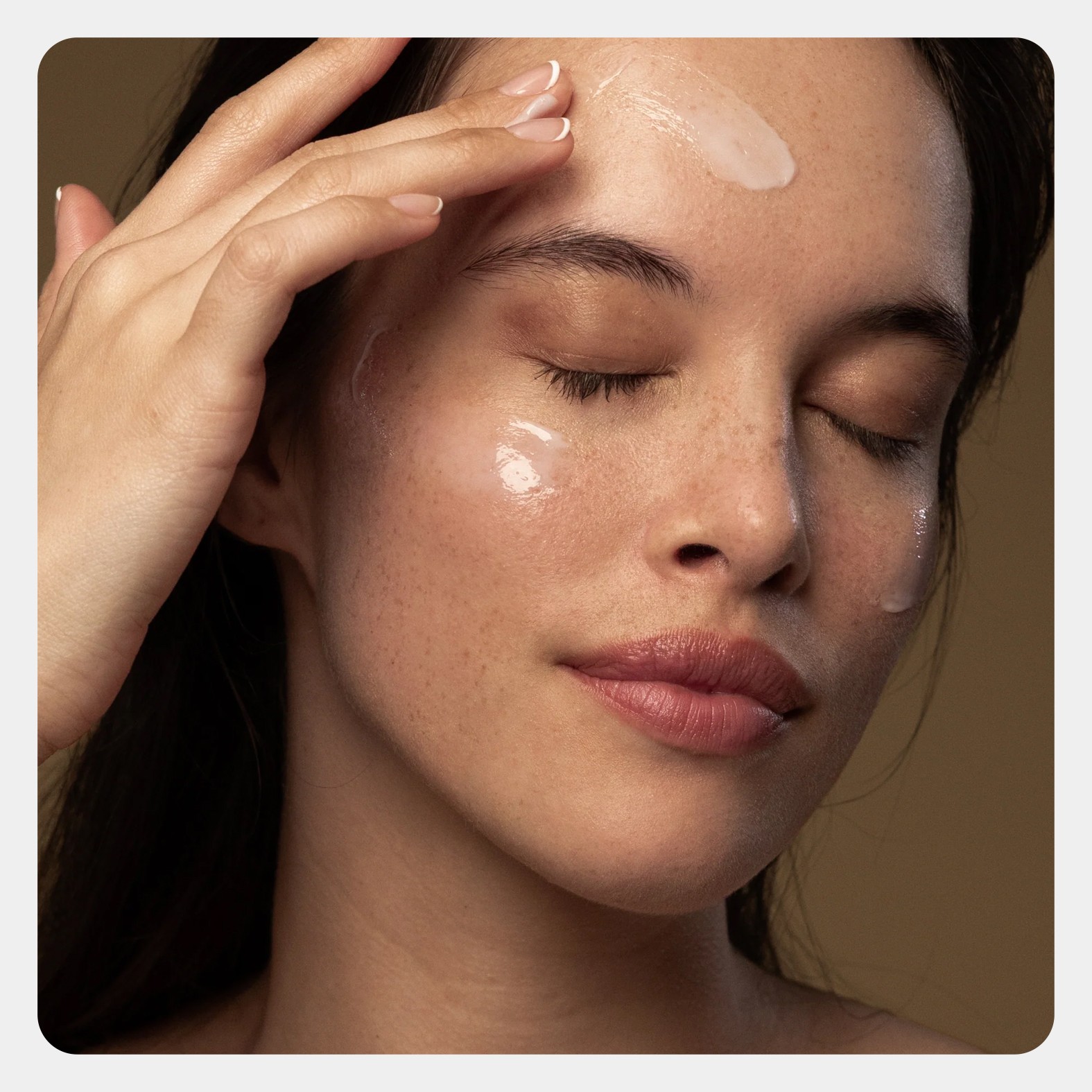 Step 2: Gently massage a pea-sized amount into the cleansed skin of face and neck.