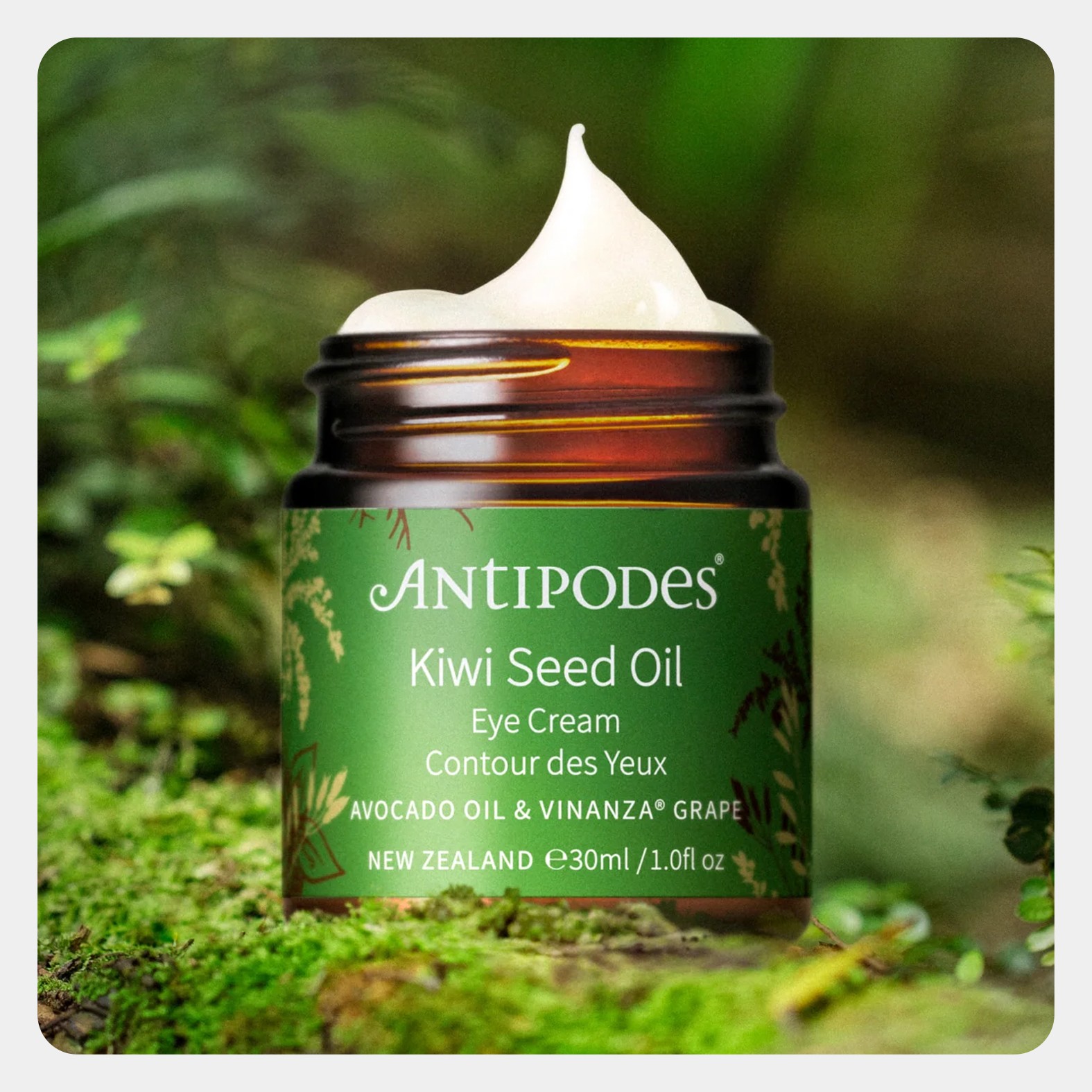 A luscious yet light eye cream that softens signs of ageing whilst moisturising the delicate eye area. Nourishing oil from New Zealand-grown kiwifruit, rich in vitamin C, supports collagen production, whilst antioxidant extract Vinanza® Grape, from Marlborough sauvignon blanc grape seeds, improves skin elasticity and offers protection from environmental aggressors. No added fragrance.