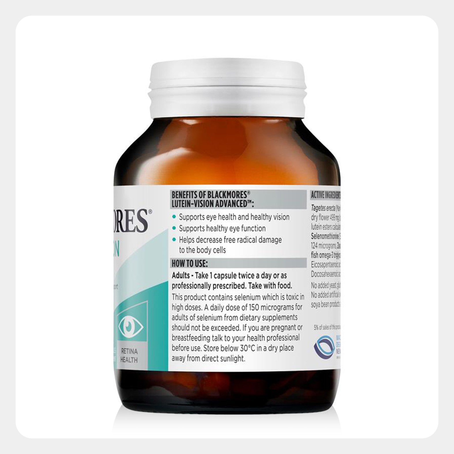 LUTEIN-VISION ADVANCED also contains selenium and omega-3s to support healthy eyes.