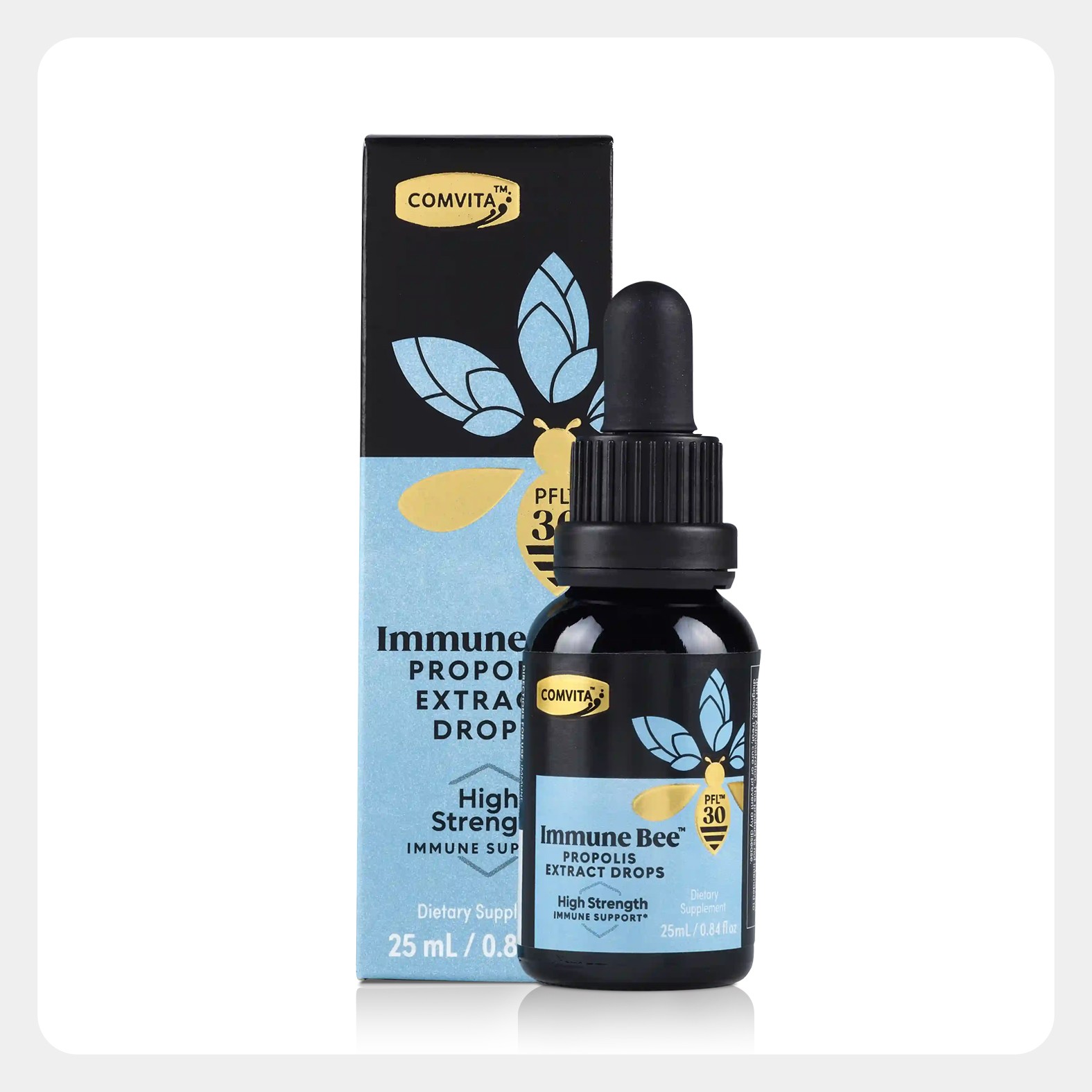 Immune Bee™ propolis PFL30 High Strength Extract Drops has been specially formulated to provide a high strength, daily dose of bee propolis for immune system support, antioxidant support, oral health or skin repair in a convenient liquid.