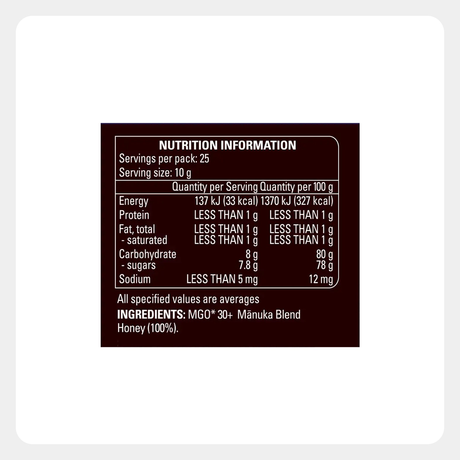 含有至少50%的麦卢卡蜂蜜,口感丰富,花香四溢。